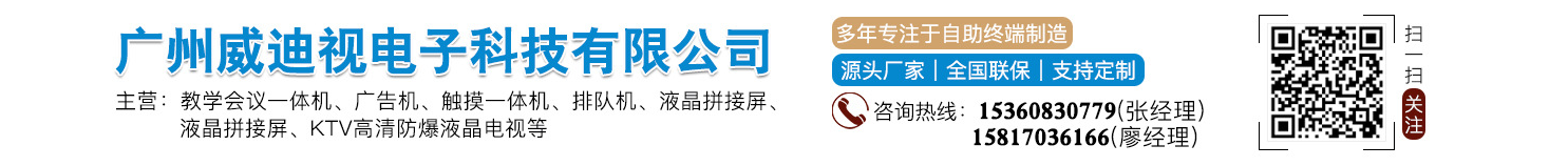 廣州威迪視電子科技有限公司是一家專業從事防爆液晶電視機、電視電腦一體機、觸摸廣告機、觸摸查詢機、觸控教學機、拼接屏等系列產品的軟硬件研發、生產、銷售,應用于一體的高科技企業。
